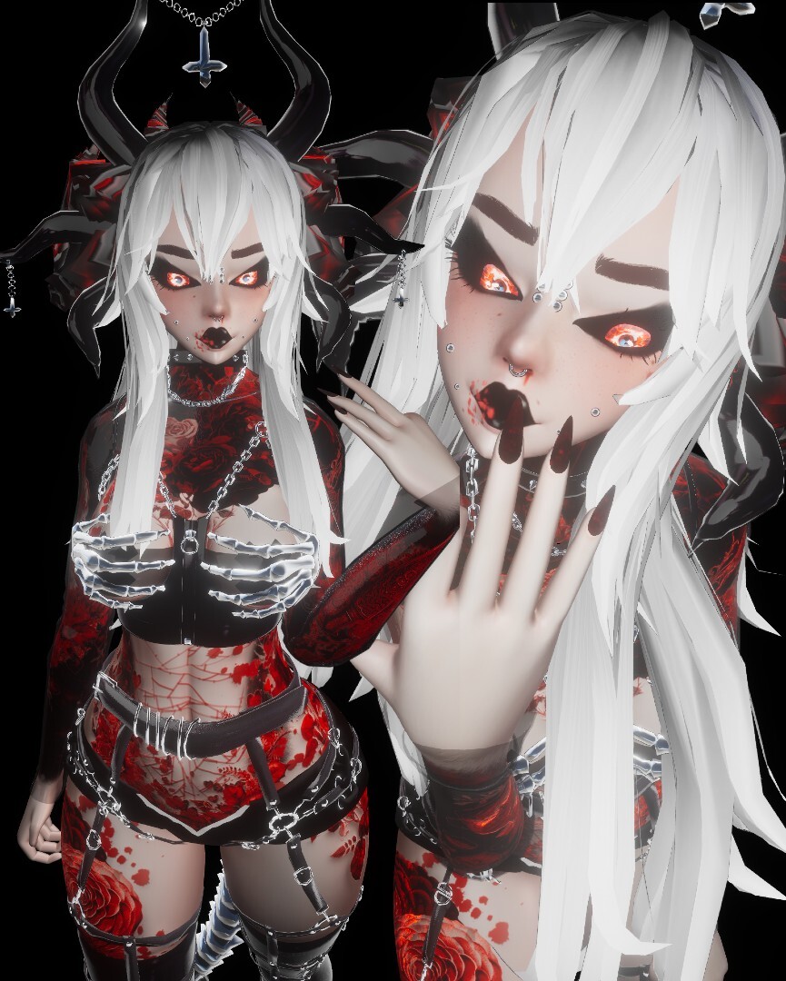 Dissolving Toggles. Bunny: Body Chains, Bodysuit, Crop top, Goth Pants, Leg Harness, Jacket, Corset Top, Coverings, Shorts, Skeleton Hand Top covering, Thigh High Socks, Latex Cover Strip, Wings, Horns, Bone Tail. Vance: Body Chains, Horns, Boxers, Pants, Harness, Jacket, Latex Crop, Skeleton Hoodie, Tail, Wings.